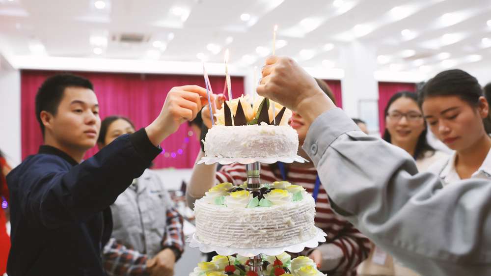 生日会上,蛋糕上的蜡烛星光点点照亮了麻豆国产在线人幸福的笑脸。大家围在一起,唱生日歌、许下美好心愿、领取生日礼物、吃蛋糕、分享生日喜悦,感受着公司这个大家庭的温暖。整个生日会,时间虽然短暂,但温馨而热烈,欢声笑语不断,温情幸福不断。