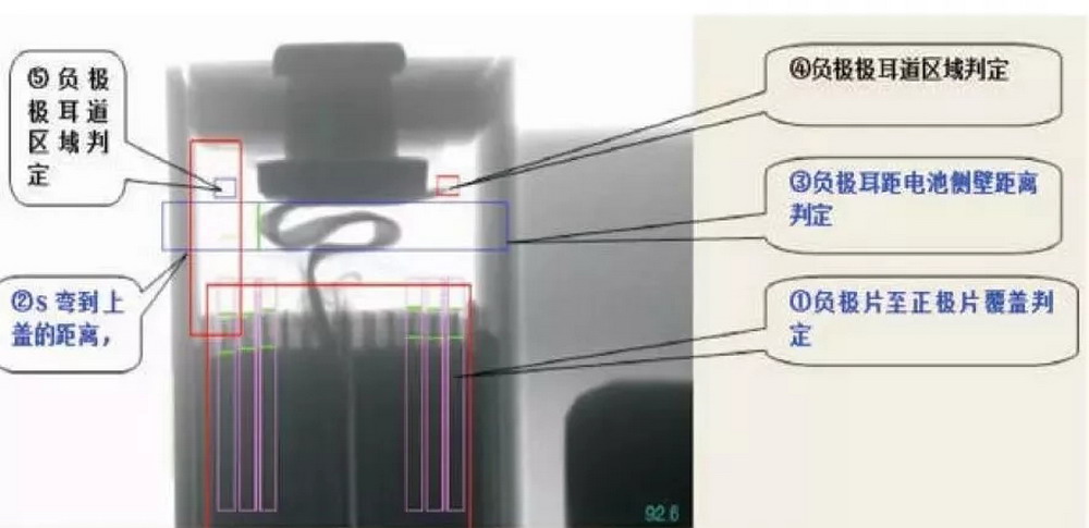 其中,全自动X光检查机(XG5310)可对铝壳电池头部极耳内部结构和正负极片对齐度以及电池平面正负极片对齐度进行全自动检测。