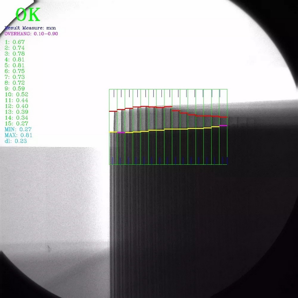 ▲铝壳电池头部极耳内部结构和正负极片对齐度检测