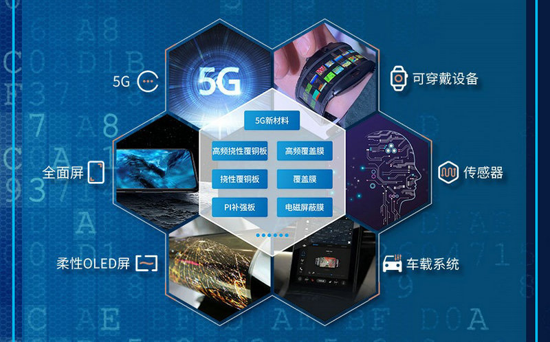 南昌麻豆国产在线所研发生产的FPC高端材料(高频挠性覆铜板、高频覆盖膜、有胶挠性覆铜板、覆盖膜、无胶单/双面挠性覆铜板、PI补强板、电磁屏蔽膜等)广泛应用于5G通讯、智能安防、智能车载、电动汽车和OLED等多个热门高科技领域。原材料供应上可谓是一应俱全,满足了客户一站式采购诉求,更能帮助客户提高采购效率,降低采购成本。