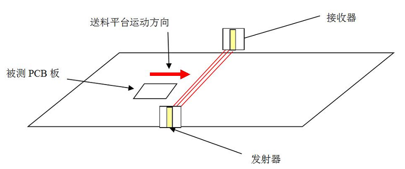 利用非接触式影像测量技术,通过一对高精度激光位移传感器,包括一个接收装置和一个发射装置,当覆铜板或亚洲无码麻豆视频板经过这对位移传感器时,有板的地方将会阻挡发射装置发射的信号,从而在接收装置上无法响应相应位置的信号。
