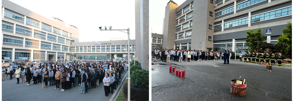 现场模拟园区4号楼2楼发生火灾,响起消防警报,我司义务消防员前往处置,因火势过大,请求松山湖消防大队支援。在我司义务消防员的指引下,全体职工按照既定的逃生路线,迅速有序地往大楼前的空旷地带撤离集合,全体职工紧张有序、弯腰前行,整个过程无踩踏拥挤、摔伤等现象,疏散过程有序严谨。