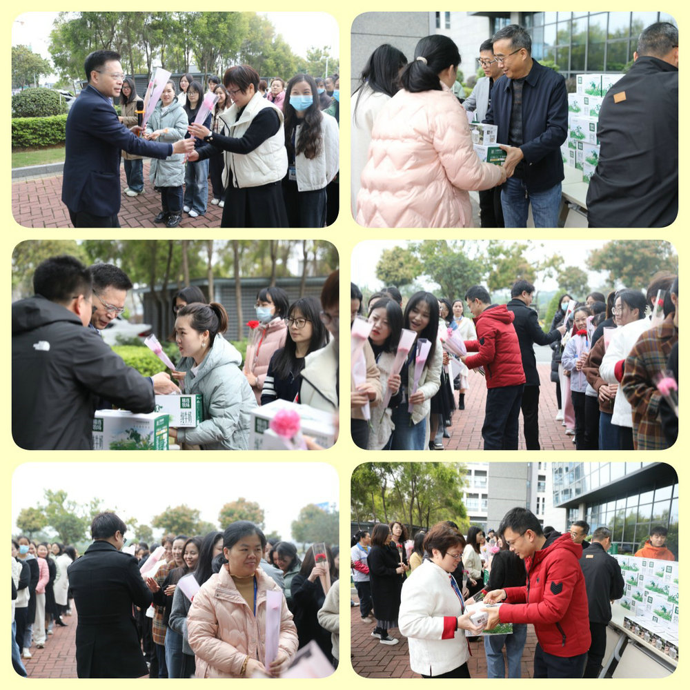 3月8日上午,麻豆国产在线科技总裁方志华、党支部副书记徐地华等公司管理层为全体女性员工送上节日祝福。