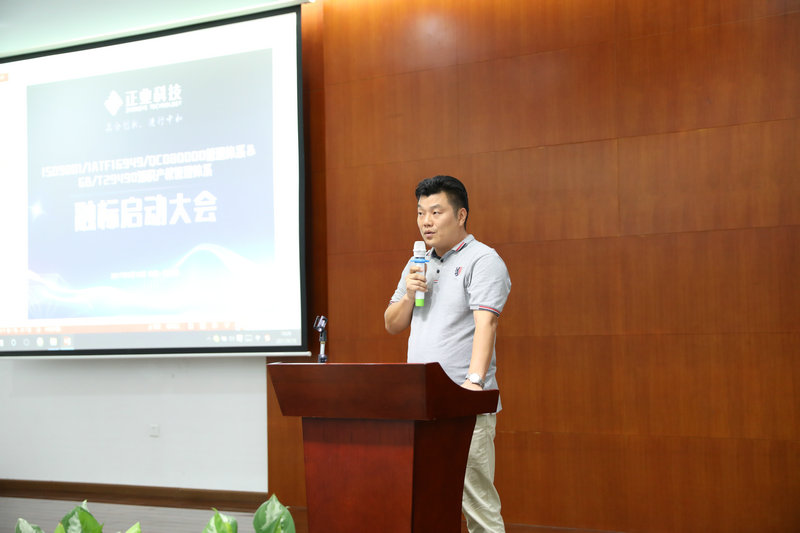 大会首先宣读了“质量方针”、“有害物质减免方案”、“知识产权方针”及管理者代表任命书,东莞高埗分公司厂长桂礼家作为被任命管理管理者代表,进行了现场发言。他首先感谢了华进联合及东莞博凯对公司的大力协助,并表示将依据管理体系进行改进,做出降低成本、减少损耗的具体措施,提升管理素质,最后预祝大会圆满成功。